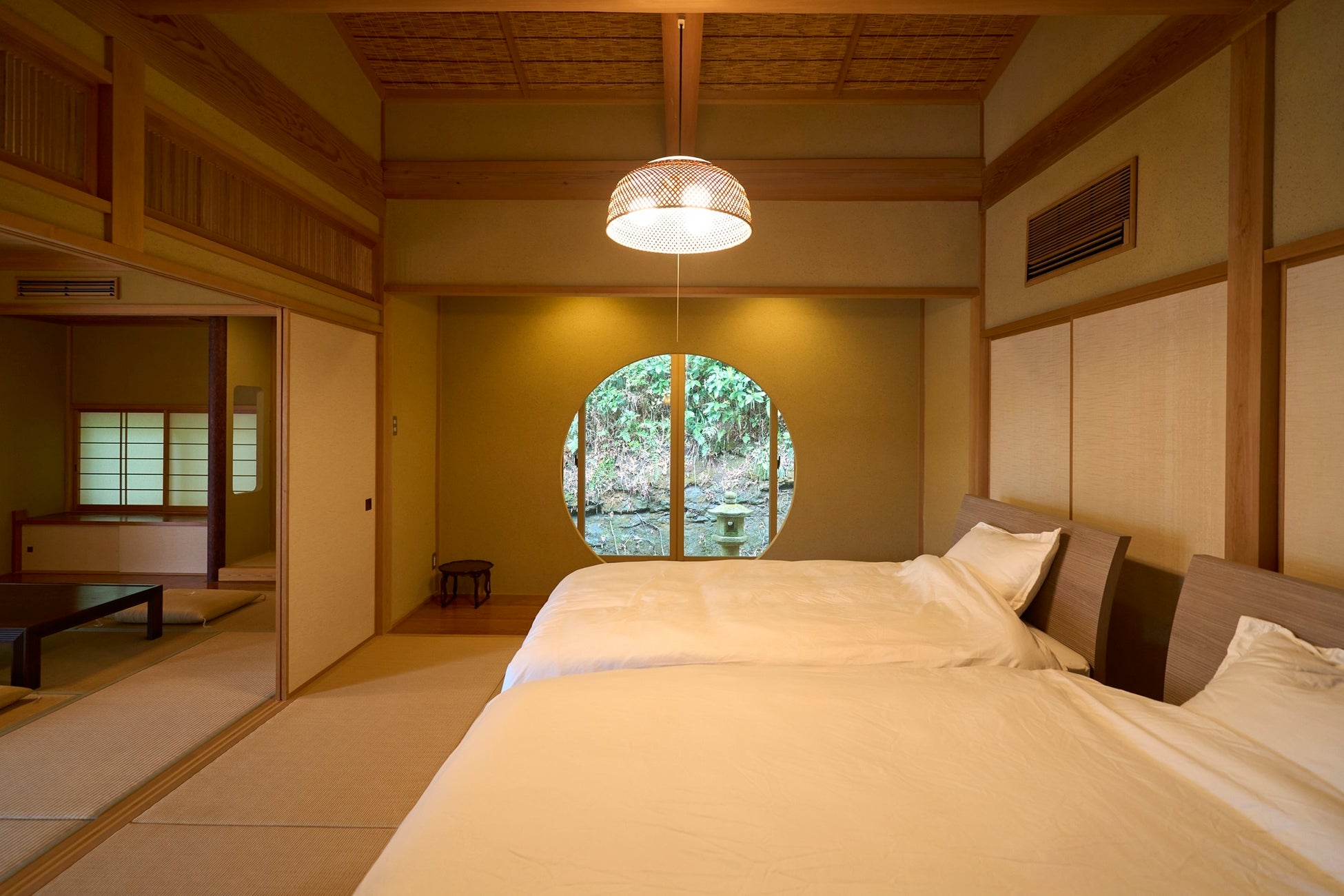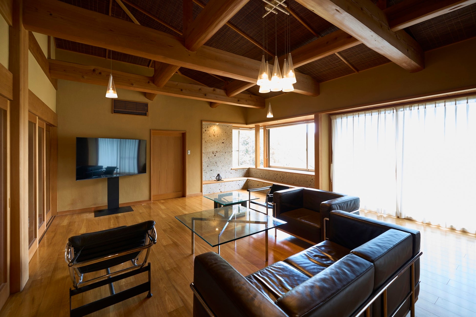 また、「スイートヴィラ マンスリー 鎌倉 雪ノ下 大御堂」が位置する場所は、かつて源頼朝が大御堂と称された勝長寿院を建立し、父の源義朝の菩提を弔い、北条政子が晩年を過ごし、長らく源氏の菩提寺として栄えた地。その跡地を悠然と見下ろす広大な敷地に佇んでいます。鶴岡八幡宮や永福寺など鎌倉の歴史を感じられる観光スポットを巡る拠点として最適で、伝統的建築と現代の使いやすさを兼ね備えた魅力のある大型施設となっています。室内は2LDKのゆとりのある間取りで、土間にある薪ストーブが非日常空間を演出し、静けさを楽しみながらおくつろぎいただけます。寝室は和室にベッドが2台、布団も2セット用意されており、定員は最大6名です。さらに、ペットと一緒にご宿泊することもできます。