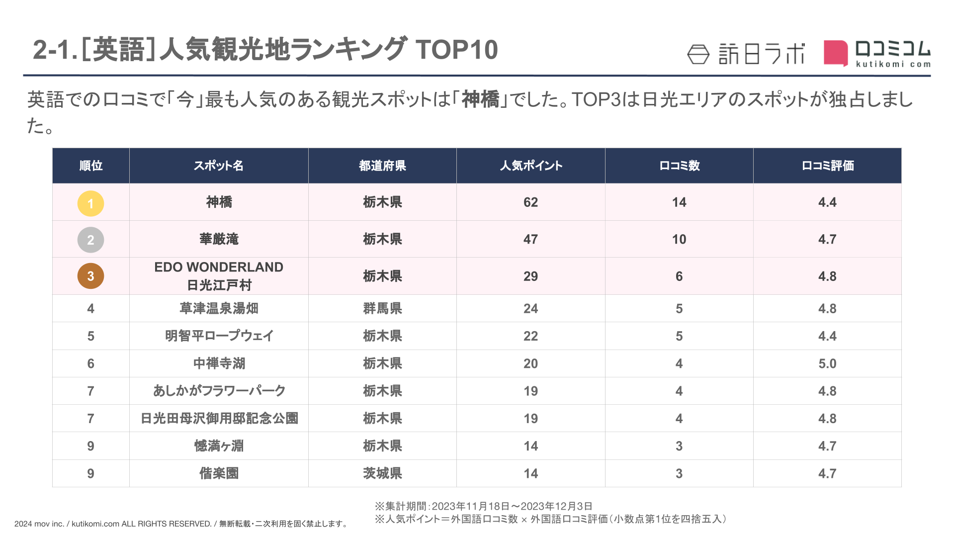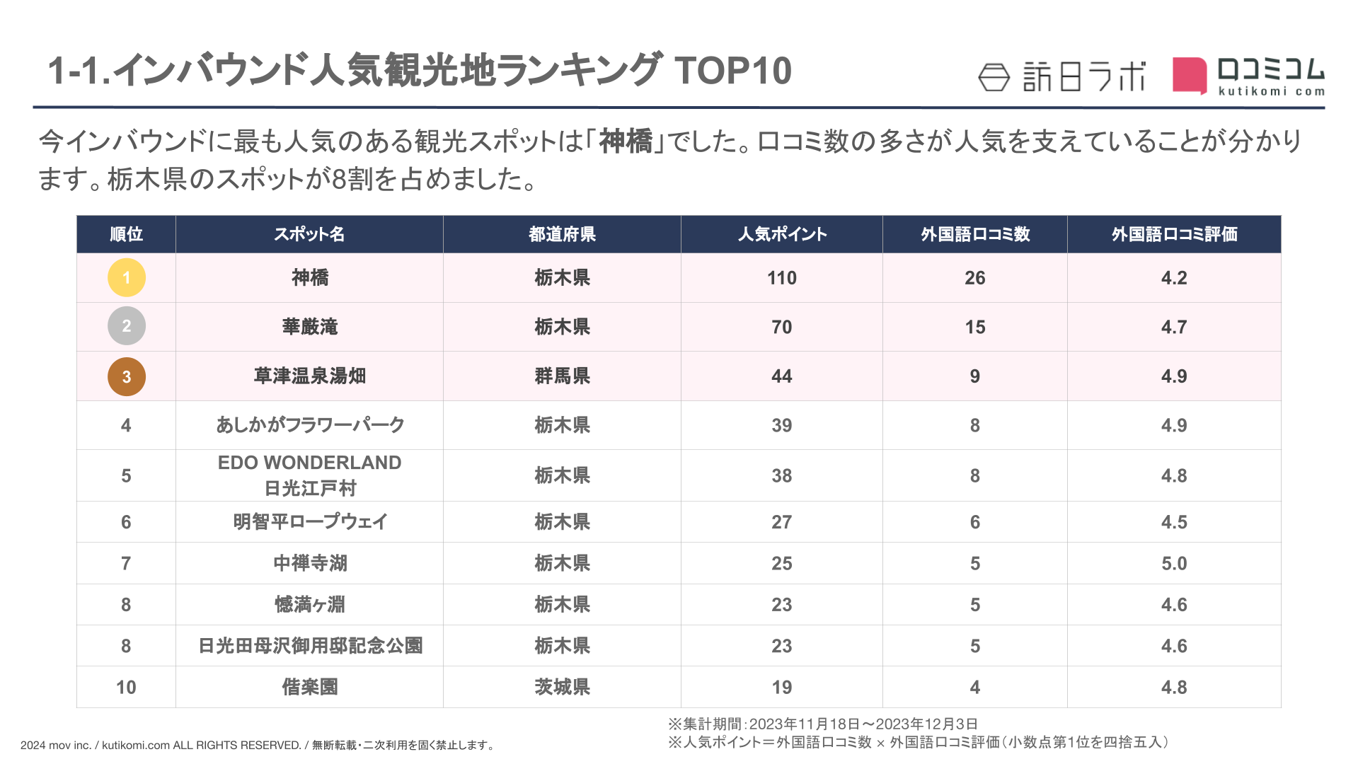 インバウンド対策や口コミマーケティングのヒントに、本レポートをぜひご活用ください!