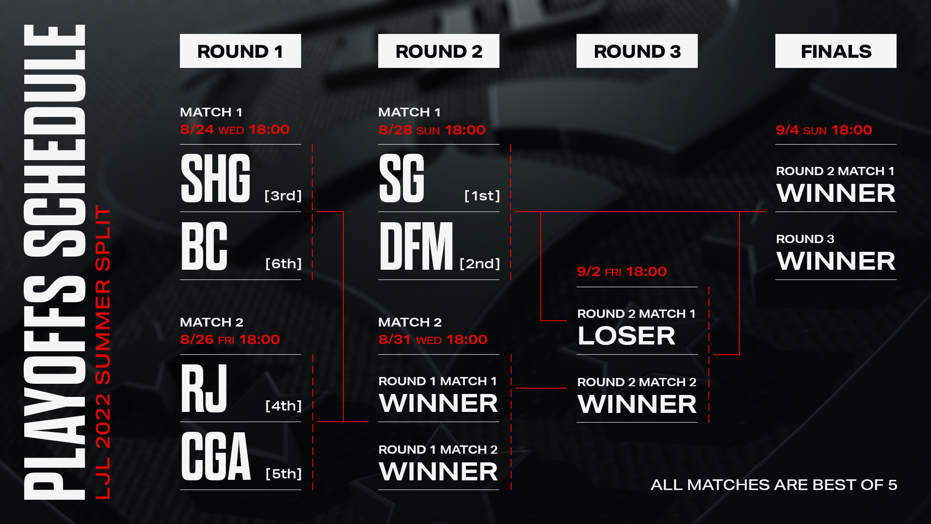 - 【 LJL 2022 Summer Split プレイオフ日程】