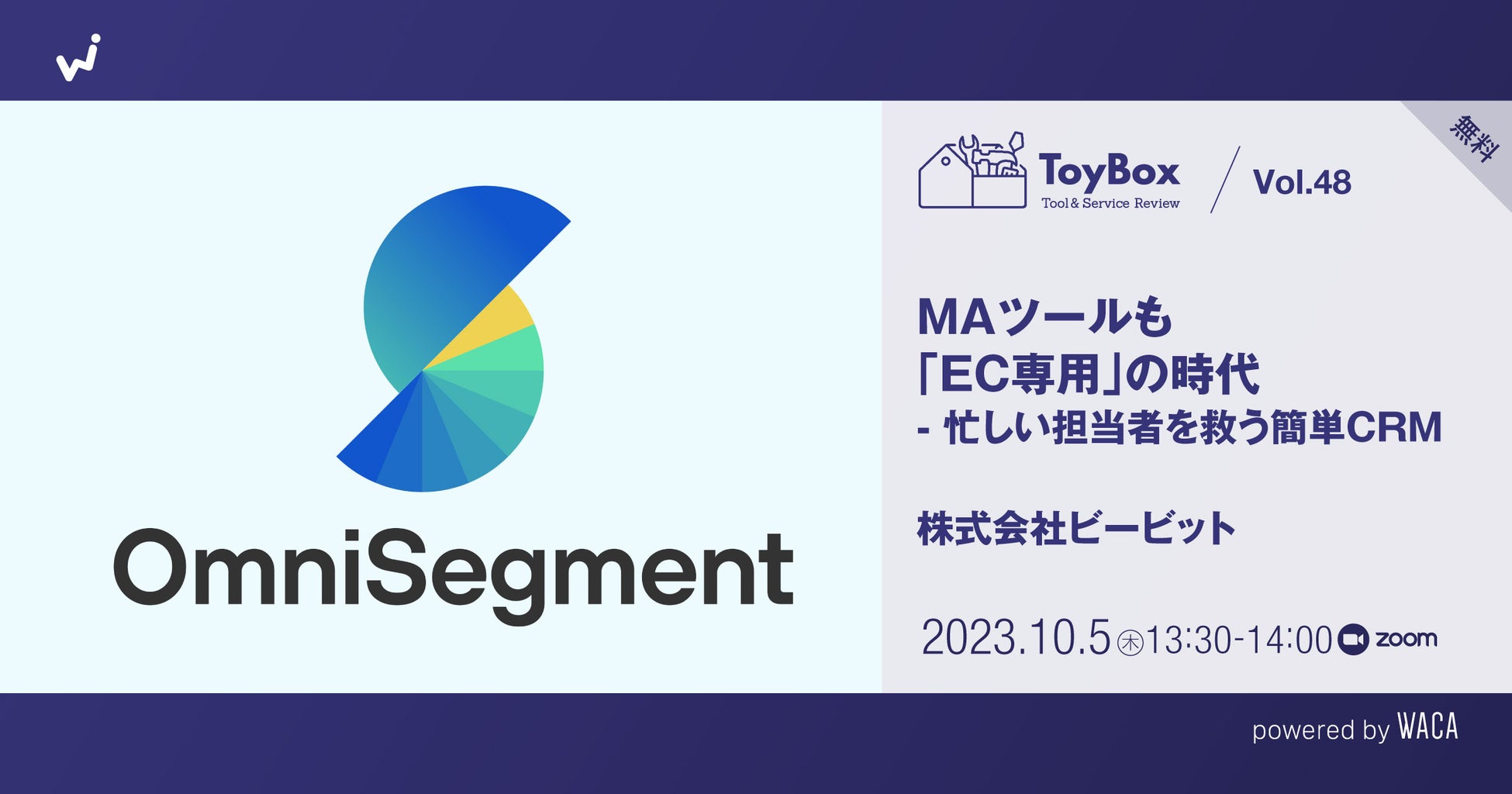 2023/10/5(木)13:30 - 14:00 MAツールも「EC専用」の時代 - 忙しい担当者を救う簡単CRM【ToyBox】Vol.48