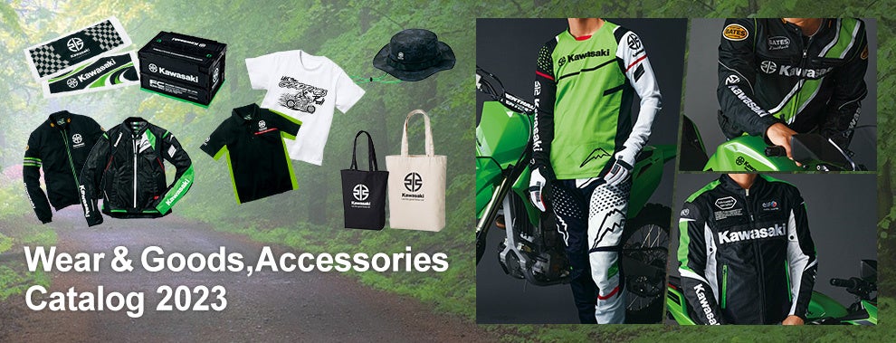 全国のカワサキ正規取扱店やオンラインショップで取扱うオリジナルアイテムや車両アクセサリーパーツが掲載されたカタログ「Wear & Goods,Accessories Catalog 2023」を2023年3月31日に公開しました。