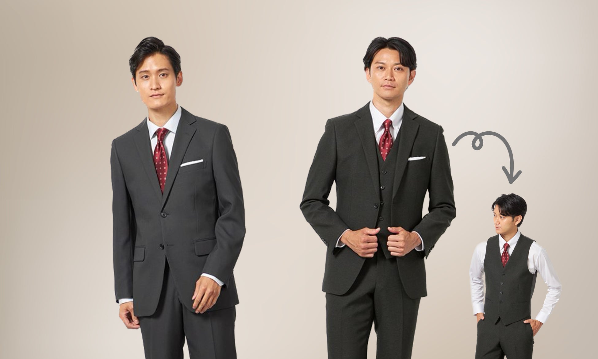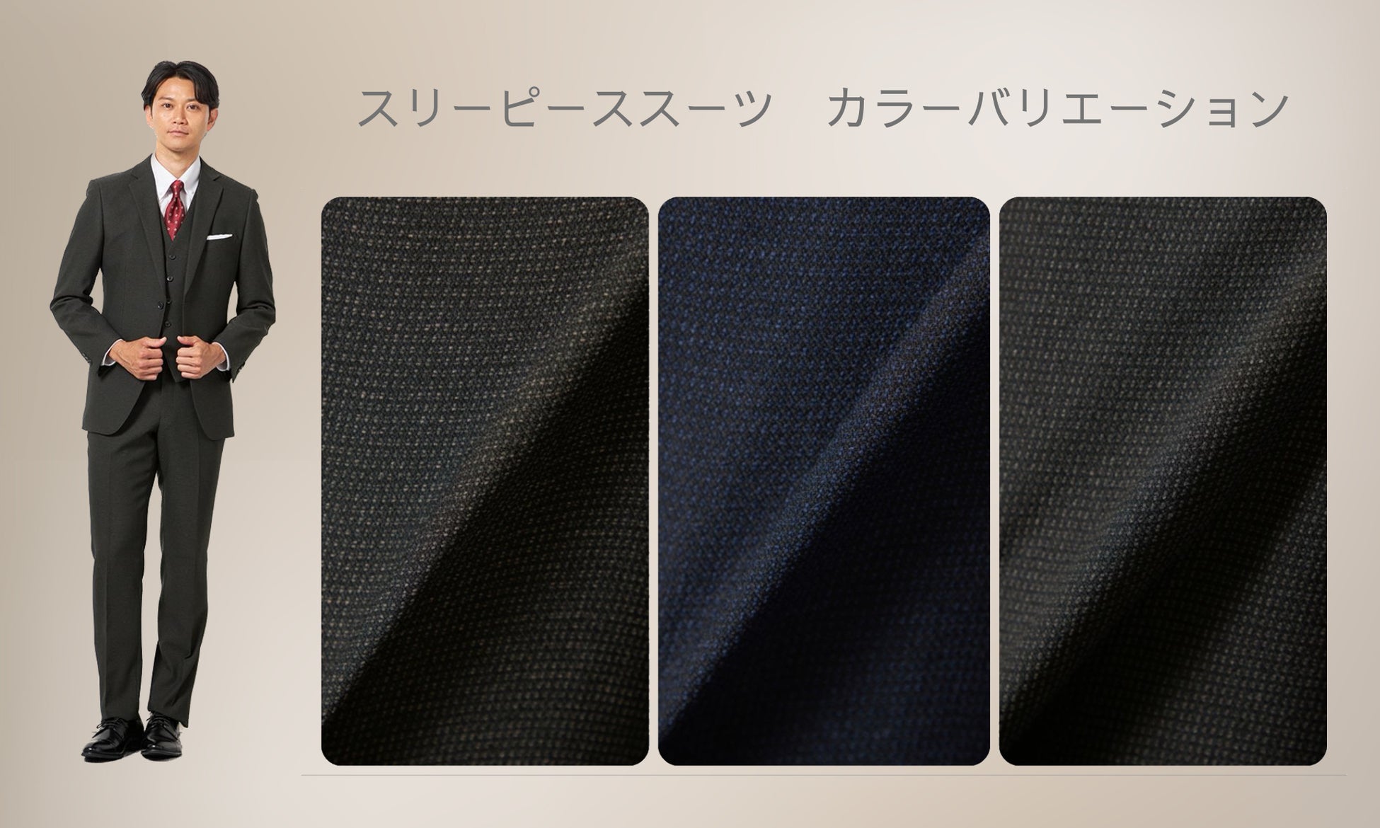 ツーピースが9デザイン、ベスト付きスリーピースは3デザインと全12デザインからお気に入りの一着をお探しいただけます。