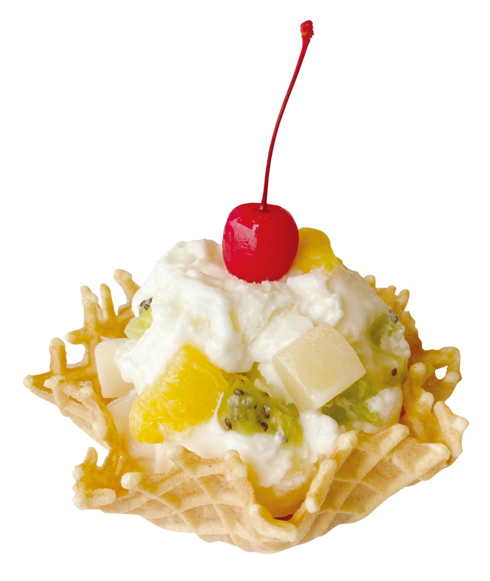 オレンジ、キウイ、白桃、さくらんぼを使用した、カラフルで見た目も楽しい杏仁ジェラート。最後まで様々な味わいをお楽しみ頂けます!