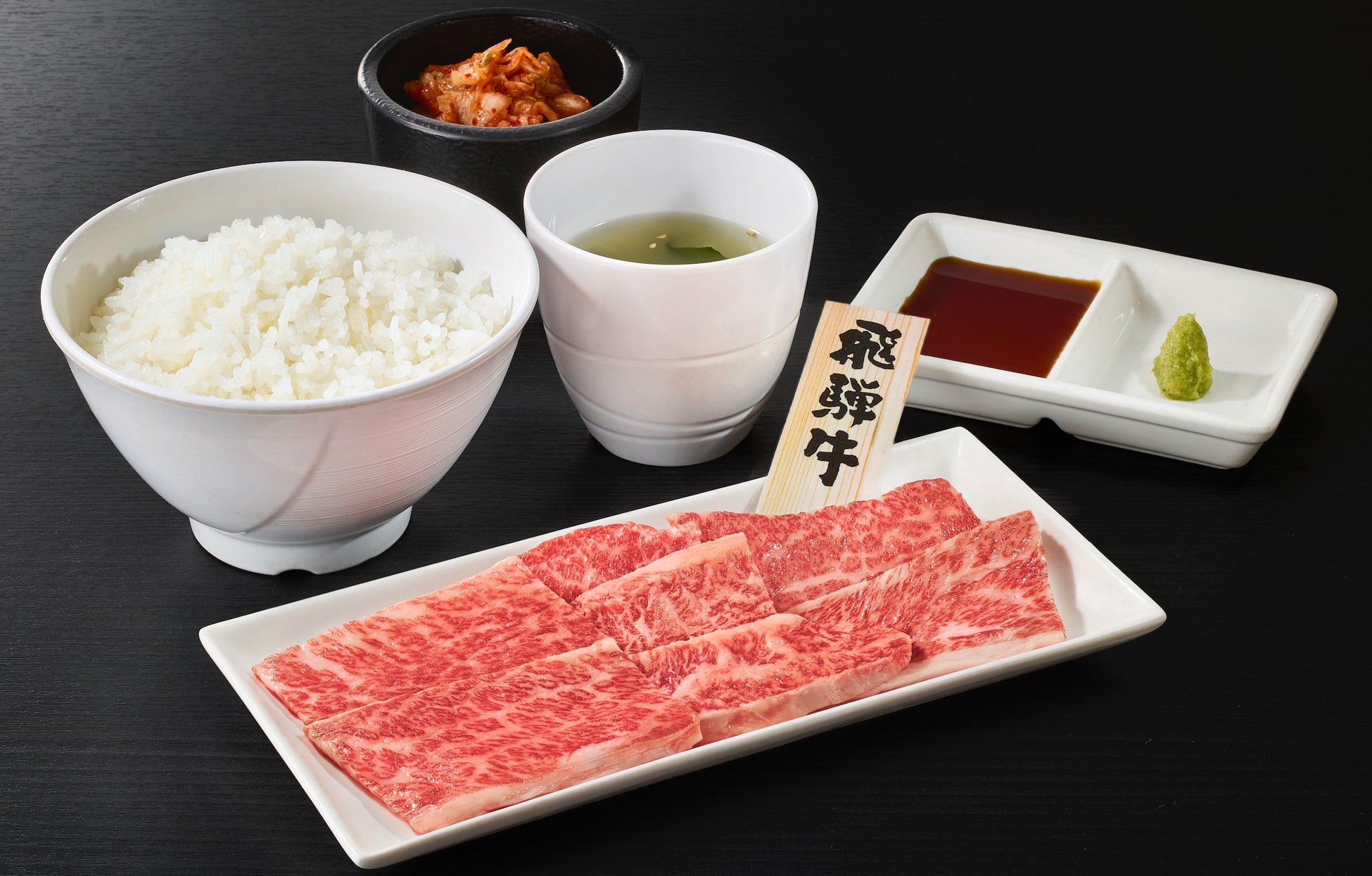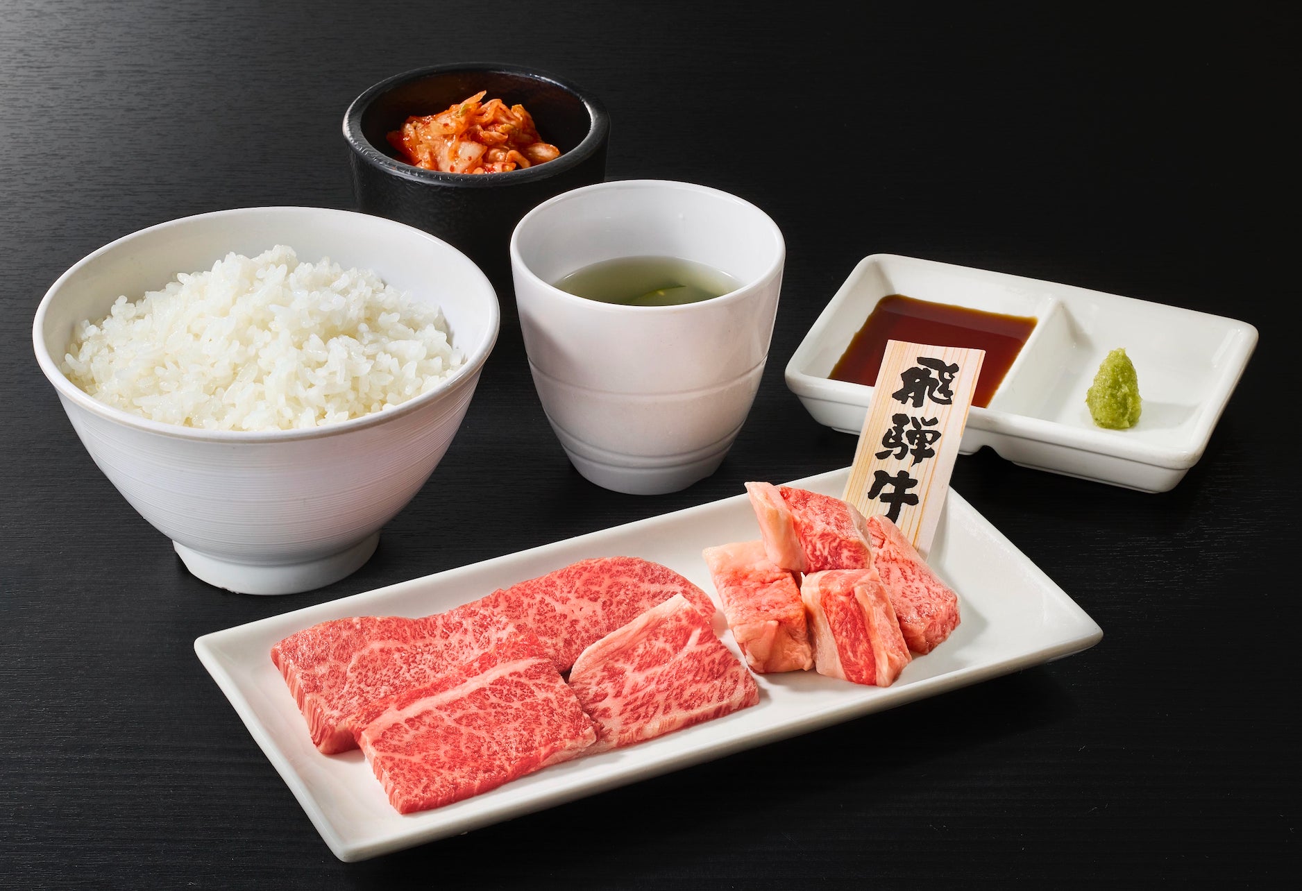 柔らかさや脂の乗り具合など、飛騨牛のなかでも特に厳選した極上の肉を、こだわりのごはんに乗せてから。飛騨牛からほとばしる上品な甘みやコクと、“焼肉と最高に合うごはん”として選んだ、岩手県産の銘柄米「ひとめぼれ」が引き立て合う美味しさの真髄をお楽しみください。