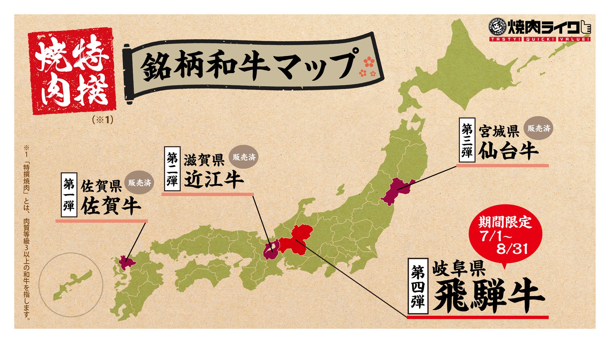 株式会社焼肉ライク(本社:東京都渋谷区、代表取締役:髙橋尚也)が展開する「焼肉ライク」は、「特撰焼肉シリーズ」第四弾として、岐阜県が誇る、肉質等級3等級以上のブランド和牛『飛騨牛』を7月1日(火)より期間限定で販売いたします。夏のボーナスでぷち贅沢や、いつも頑張っている自分への夏のご褒美として、ぜひこの機会に贅沢な味わいをご堪能ください。