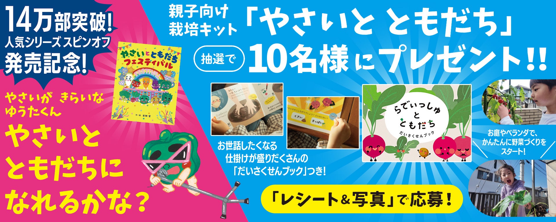 【新刊情報】野菜を好きになってほしい! 14万部突破!大人気シリーズスピンオフ『やさいとともだちフェスティバル』(岩神 愛 作・絵)、タキイ種苗(株)の家庭菜園ブランド「UETE(ウエテ)」とコラボ!