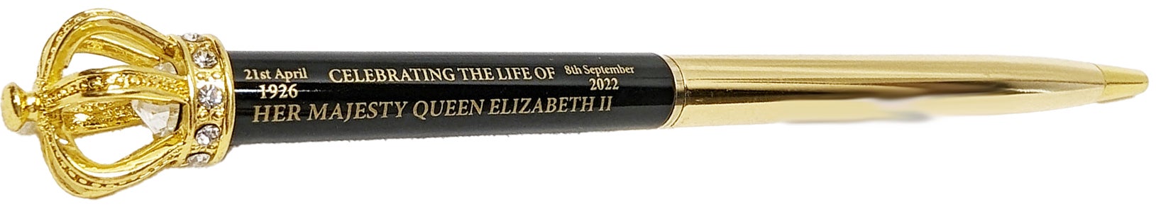 ロンドンの人気お土産ブランド『エルゲート』からきらびやかなラインストーンが王冠に埋め込まれた今はなき女王陛下を偲ぶ実用的なボールペンが登場します。