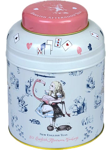 イギリスの老舗紅茶ブルックボンドの創設者、アーサーボンド氏の曾孫によって1985年に創立された『ニューイングリッシュティー』。「不思議の国のアリス」が描かれたデザイン缶です。