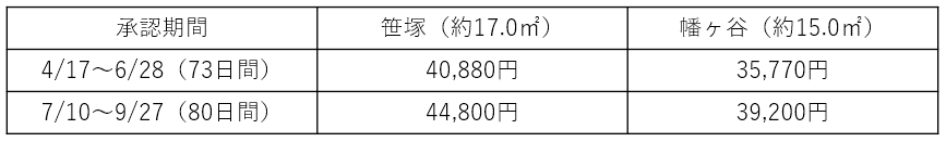 ※使用承認後、指定口座に使用開始日の5日前までに全額をご納付ください。(希望する場合は、分割納付も可能です。)※原則、1区画につき1名で使用してください。