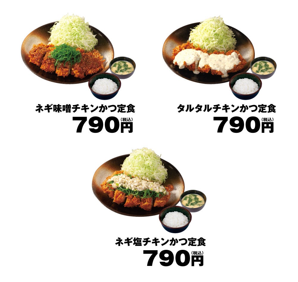 プレーンの「チキンかつ定食」に加え、ネギ味噌・ネギ塩・タルタルを選べる人気メニュー
