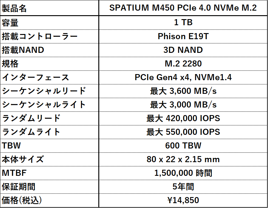 https://jp.msi.com/Storage/SPATIUM-M450-PCIe-4.0-NVMe-M.2