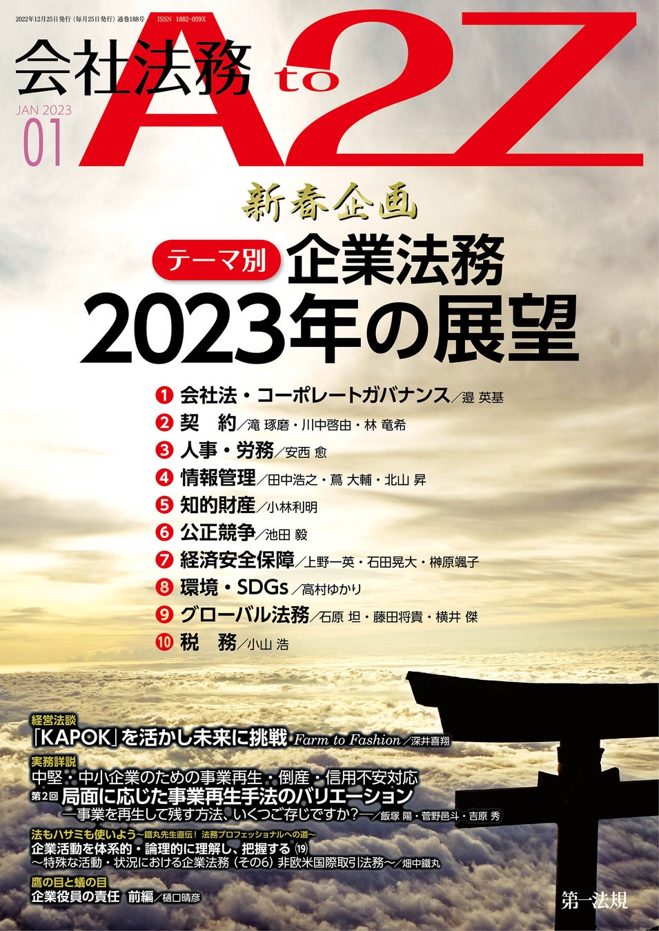 【会社法務A2Z】最新の企業トレンドや法改正情報の解説を毎月お届け!2023年1月号特集は新春企画”企業法務 2023年の展望”!