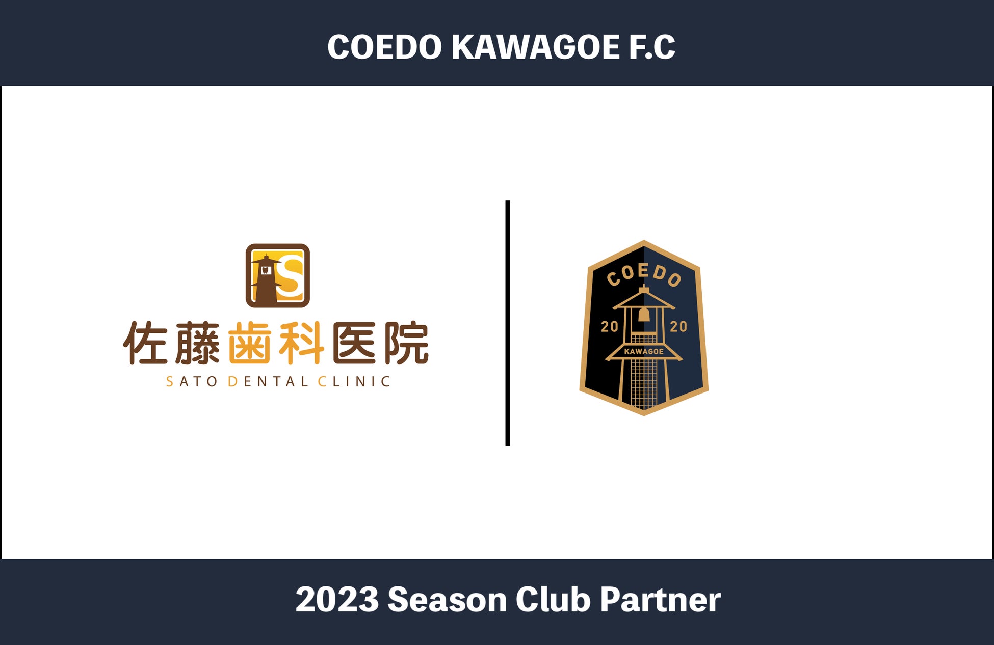 COEDO KAWAGOE F.Cを運営するCOEDO KAWAGOE F.C株式会社(埼玉県川越市、代表取締役 有田和生)は、川越駅徒歩9分で、お子さまからご年配の方まで気軽にお越しいただける、町の歯医者さんである佐藤歯科医院(埼玉県川越市、医院長 佐藤光)と2023シーズンのクラブパートナー契約を締結したことを発表いたします。