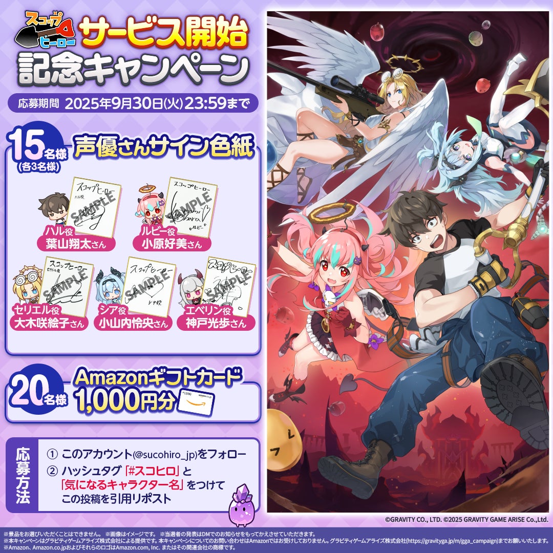ゲームリリースを記念してプレゼントキャンペーンを開催中です!期間中に、応募条件を満たした方の中から抽選で豪華声優陣のサイン色紙を15名様に、Amazonギフトカード 1,000円分を20名様にプレゼントいたします。