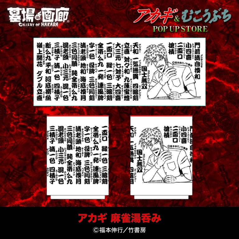 ★商品情報★2月28日(金)『アカギ』&『むこうぶち』POP UP STORE。25年目の「御無礼」開局!麻雀漫画最強位に君臨する『アカギ』&『むこうぶち』の思わず鳴いてしまうオリジナルグッズが登場!