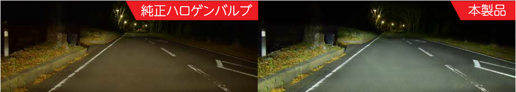 純正ハロゲンバルブのフィラメントと同じ位置にLEDチップを配置することで、対向車や先行車に幻惑を与えることなく前方の視認性を向上しました。また、発光色は純白色で路面をはっきり照らし、安全性向上に貢献します。