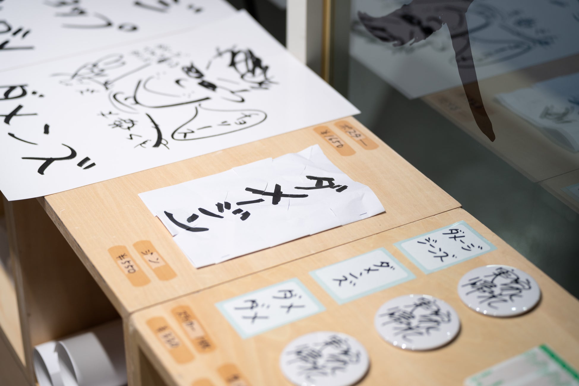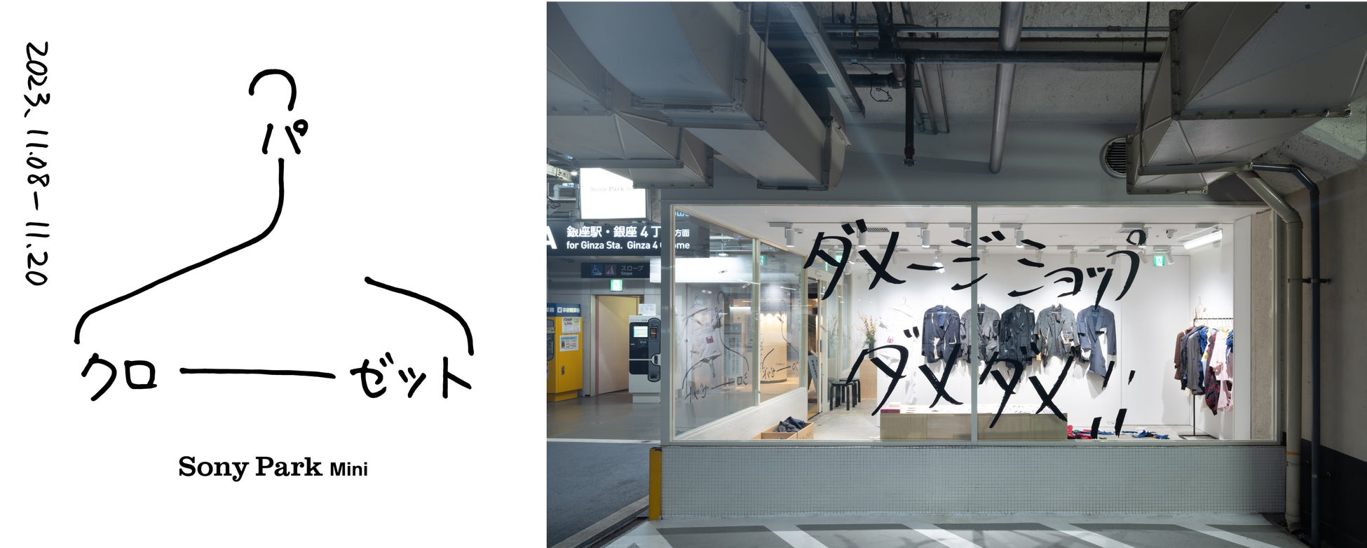 期間中、Sony Park Miniでは、このダメージ加工された作品を着て写真撮影をお楽しみいただけます(非売品)。また数量限定で、店のコンセプトをモチーフにオリジナル書体でドローイングされたポスター(1,650円)、ステッカー(330円)、ZINE(550円)、そして「実家帰れ」缶バッジ(880円)が購入できます(価格は全て税込)。さらに、会期中の11月18日(土)には加賀美氏が在廊し、着なくなった服を持参するとダメージ加工を施してもらえるワークショップ「ダメダメ!!パフォーマンス」を開催予定です。着なくなっていたあなたの服は、果たしてどのように生まれ変わるでしょうか。