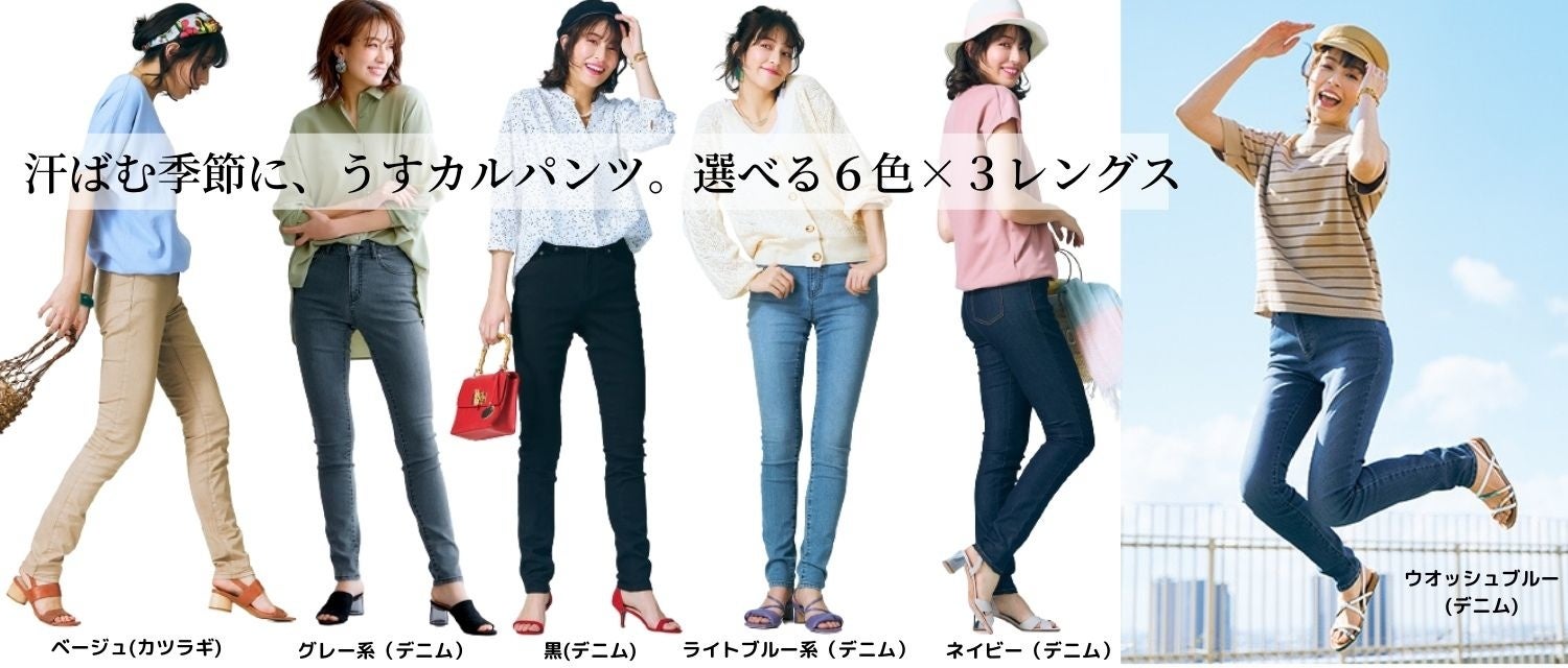 すごのびストレッチうすカルデニムスキニーパンツ(選べる3レングス)
