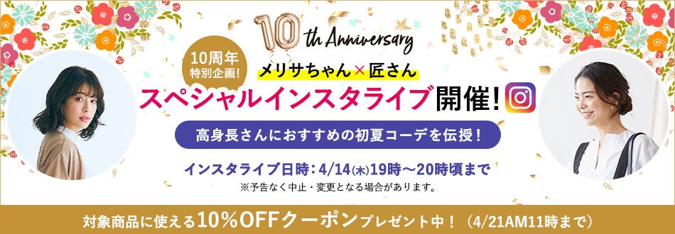 高身長女子のためのブランド『slattgir.(スラットジール)』ブランド10周年を記念して、インスタグラマー&モデルによるスペシャルインスタライブを4月14日に開催!