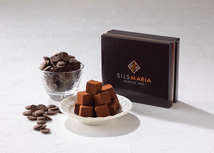 生チョコレート発祥のシルスマリア。3種類の芳醇なミルクチョコレートとクリームから作られ、滑らかに溶けていく何処にもまねのできない定番生チョコレートです。