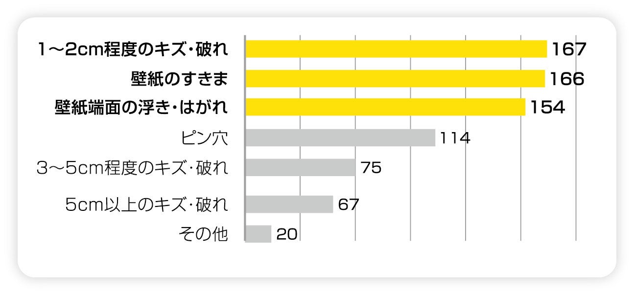 ●壁紙のキズ、やぶれ、すきま(継ぎ目)の補修 ●壁紙のはがれ(浮き部分)の補修 |