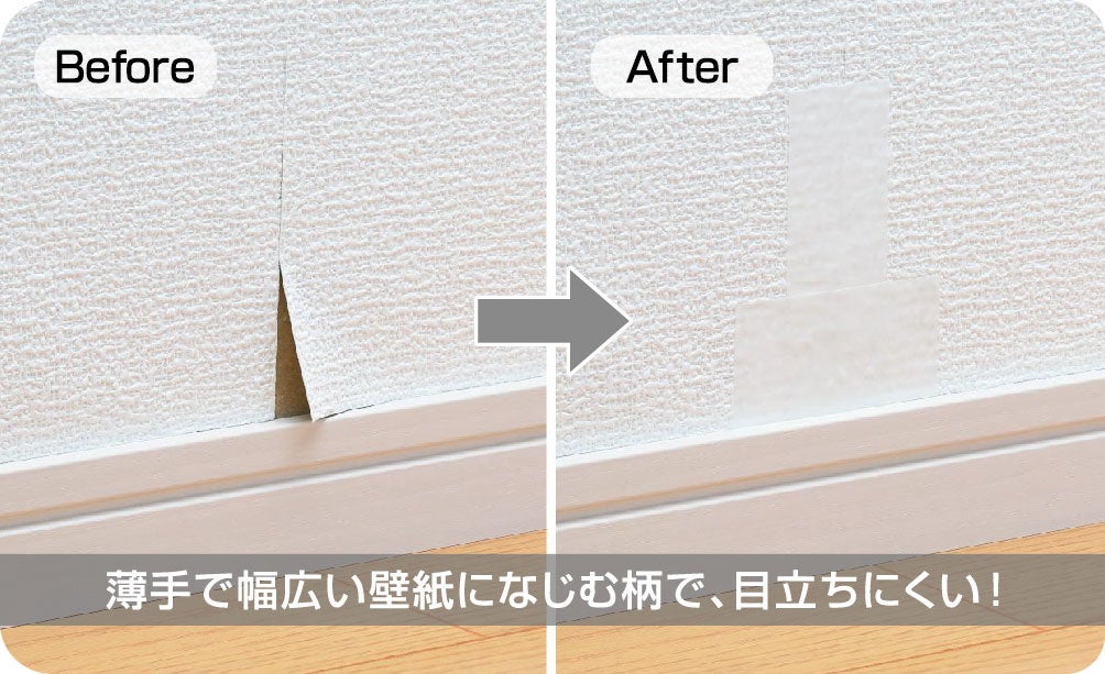 キズ、すきま、はがれなど、気になる悩みを広幅テープで簡単補修 貼ったあとが目立ちにくい、壁紙用補修テープ新発売
