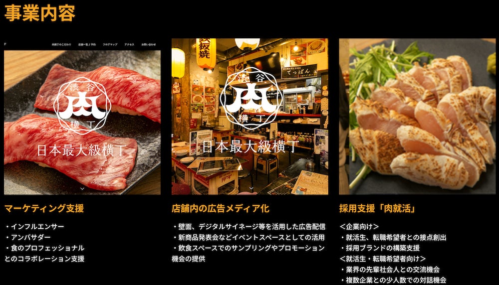 THE WHY HOW DO COMPANY株式会社(本社:東京都新宿区、代表取締役社長:岩尾俊兵、以下「ワイハウ社」という)の100%子会社である株式会社渋谷肉横丁は、年間数十万人が集う渋谷最大級の飲食施設としての強みを活かし、企業向けZ世代マーケティングと採用支援(https://shibuniku-biz.jimdosite.com/)の2軸で、新たな事業を展開いたします。