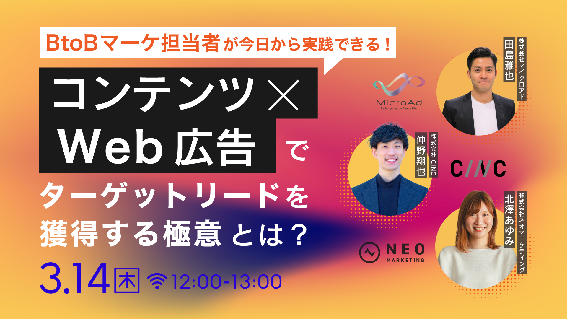 無料共催ウェビナーのお知らせ「BtoBマーケ担当者が今日から実践できる!コンテンツ×Web広告でターゲットリードを獲得する極意とは」