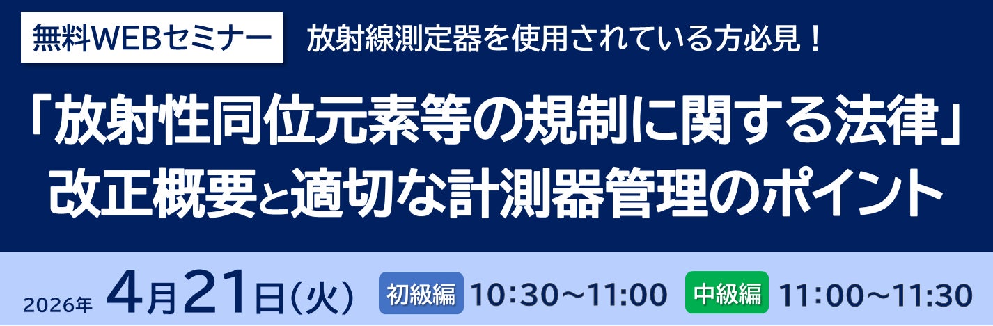 一般財団法人日本品質保証機構(本部:東京都千代田区、理事長:石井 裕晶)は、2026年4月21日(火)に、無料WEBセミナー「『放射性同位元素等の規制に関する法律』の改正概要と適切な計測器管理のポイント」を開催いたします。