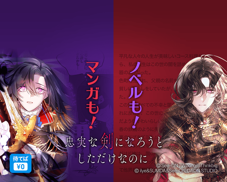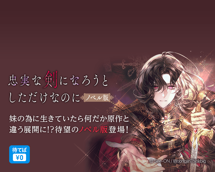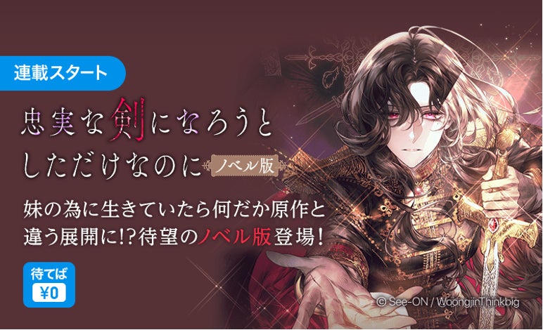 電子マンガ・ノベルサービス「ピッコマ」では、11/20(日)より、フルカラー・縦スクロールマンガコンテンツSMARTOON®︎『忠実な剣になろうとしただけなのに』(Daon Creative)のノベル版『忠実な剣になろうとしただけなのに(ノベル版)』(Woongjin Thinkbig)の配信を開始いたします。今回の配信では一挙53話分を公開。SMARTOON版より先の展開が読むことができます。更新は毎週日曜日です。