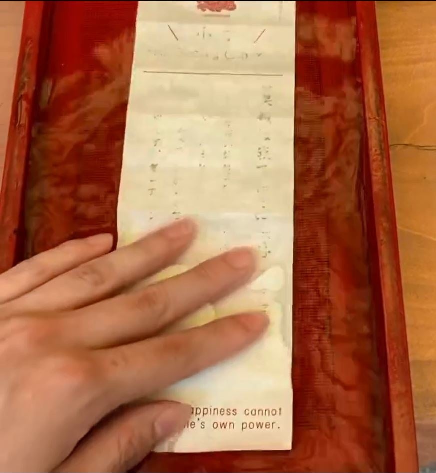 足湯ご利用のお客様限定でおみくじを引いていただけます。開いたときは白紙ですが、水に浸すと文字が浮かび上がってきます。