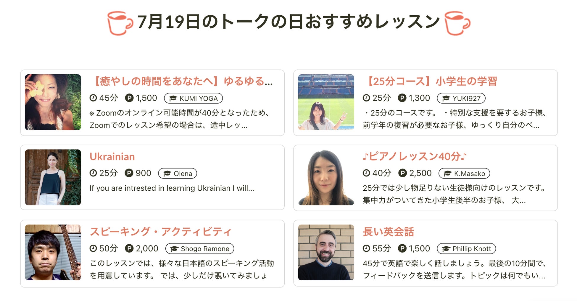 カフェトークの日のお得受講ポイント:好きな単発レッスンを受講するだけ!