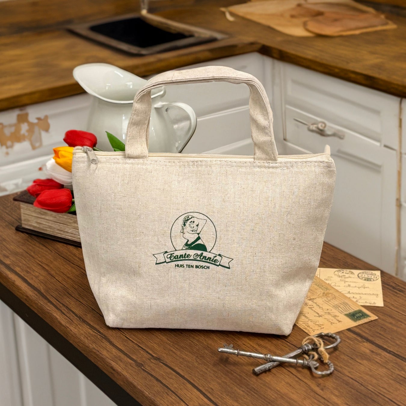 落ち着いたトーンのバッグに、タンテ・アニーのロゴ入り。気温が上がるこれからの季節に重宝するアイテムです。
