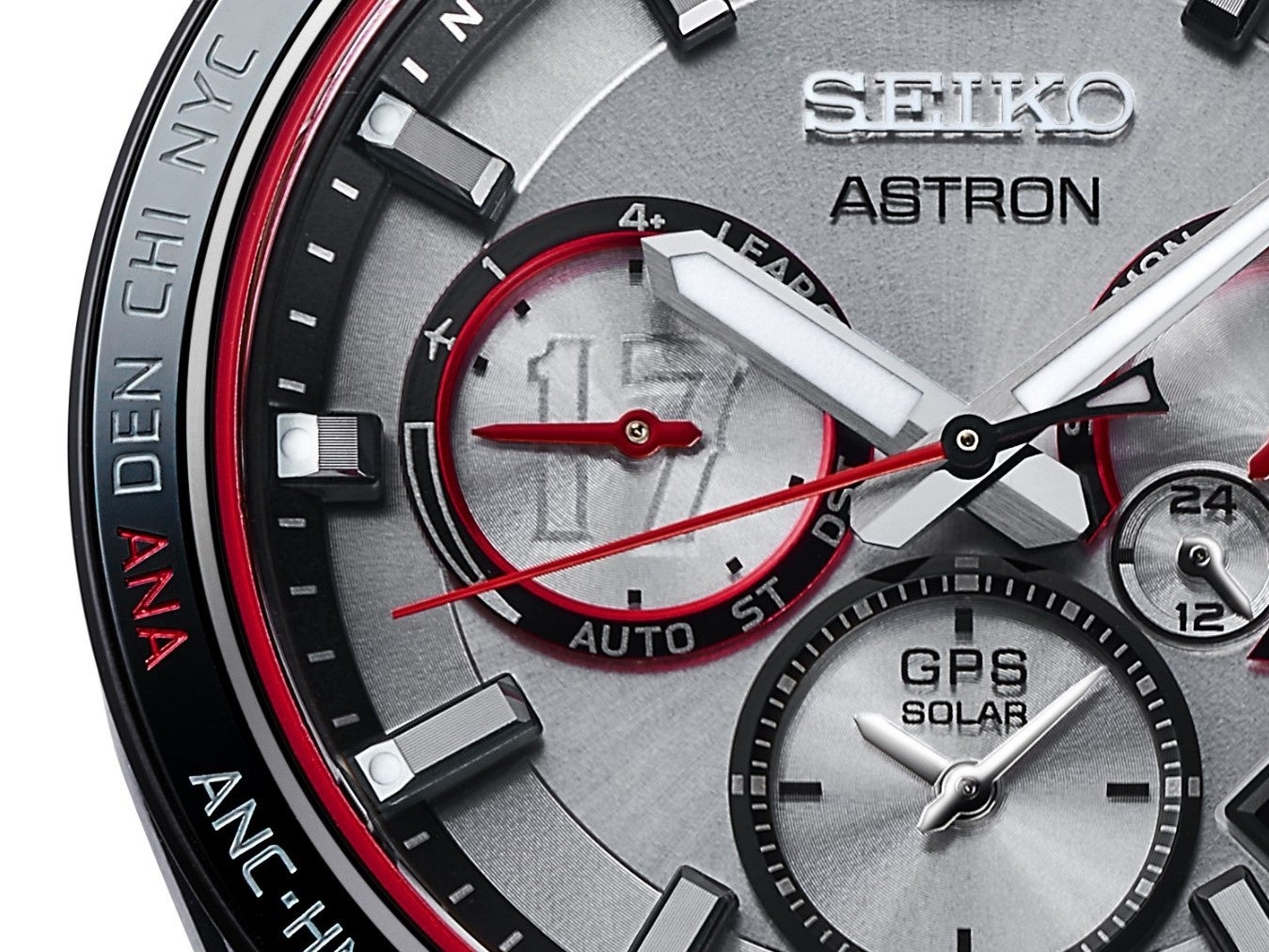 9時位置のサブダイヤル内には、大谷翔平選手の背番号「17」をユニフォームと同じ書体でレイアウト。 また、ベゼルの上面に備えた、傷つきにくく美しいセラミックス表示板は、「UTC-8」ゾーンの都市コードとして、エンゼルスの本拠地カリフォルニア州アナハイムを示す都市コード「ANA」が特別に赤色で表示されています。
