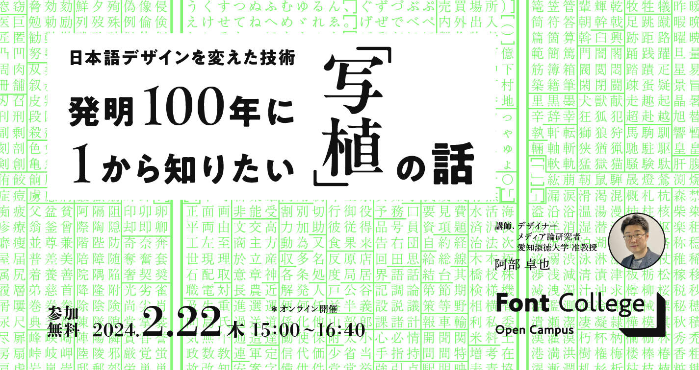 タイトル:Font College Open Campus 12「日本語デザインを変えた技術 発明100年に1から知りたい写植の話」