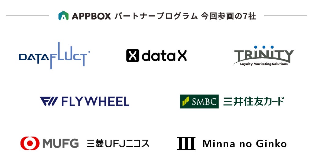「APPBOXパートナープログラム」を通じて顧客管理やマーケティング、BaaS/エンベデッドファイナンス(決済・融資・クレジットカードなどの金融サービス)など魅力的な連携先を増やし、アプリを活用したビジネスを進めるすべての企業が、「APPBOX」を使い効率的に新しいアプリビジネスに挑戦できる世界を目指しています。