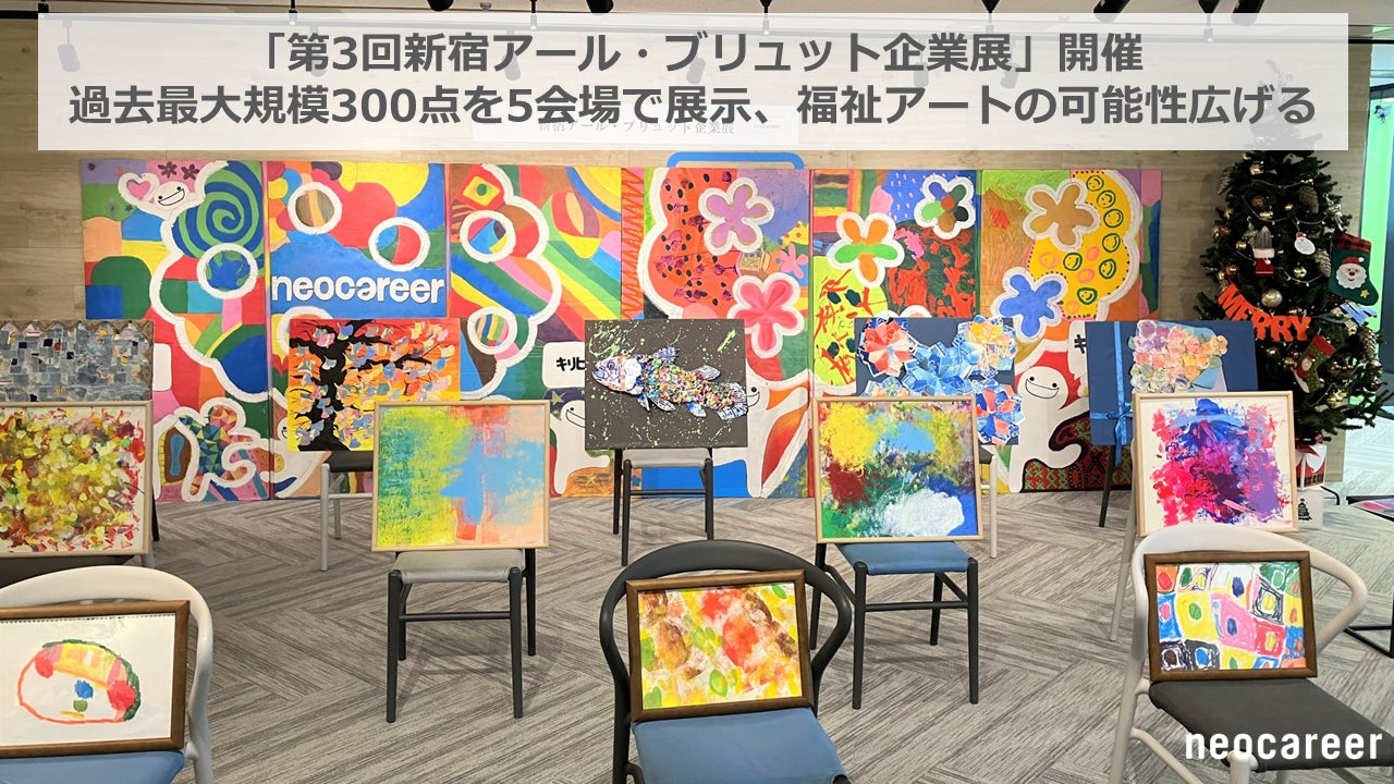 人材総合サービス会社の株式会社ネオキャリア(本社:東京都新宿区 代表取締役CEO:西澤 亮一)は、2024年12月9日から13日の5日間、新宿アール・ブリュット企業展推進コンソーシアム※が主催する障がい者や高齢者アーティストによる福祉アート展「第3回新宿アール・ブリュット企業展」をネオキャリアサテライトオフィス(住所:東京都新宿区西新宿2-3-1)で開催しました。