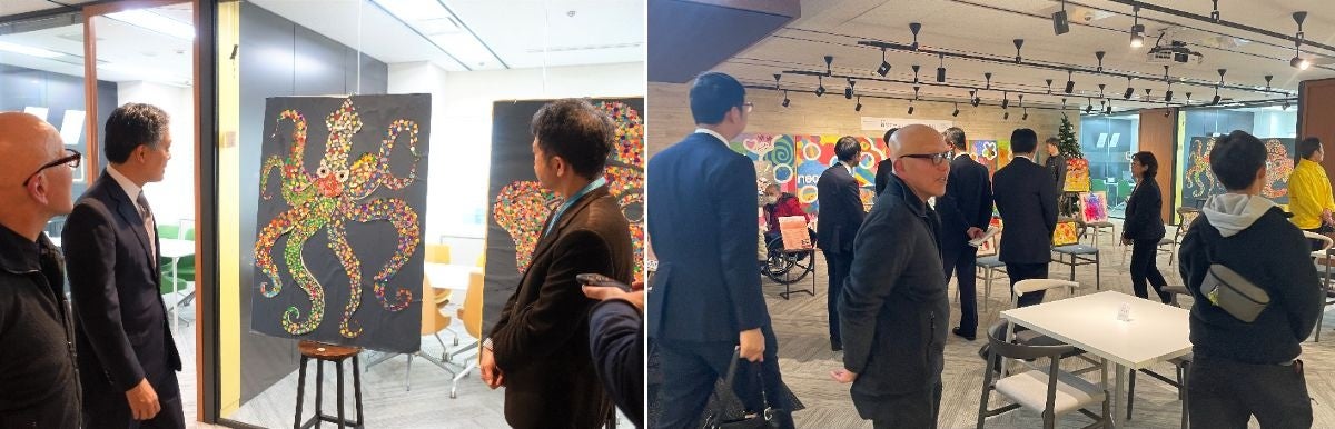 会期中、当社サテライトオフィスでは60点を超えるアート作品が展示され、多くの方々にご来場いただきました。新宿区長の吉住 健一区長をはじめ、一般来場者の方々など幅広い層の皆さまにお越しいただき、色彩豊かな作品で彩られたオフィス空間を楽しんでいただきました。来場者からは「オフィスでこれほど感動的なアート体験ができるとは思わなかった」「素敵な色合いの作品や個性豊かな作品も多く、見ていてとても楽しく、リフレッシュできた」などの声が寄せられ、多くの好評をいただき大盛況のうちに展示会を終えました。
