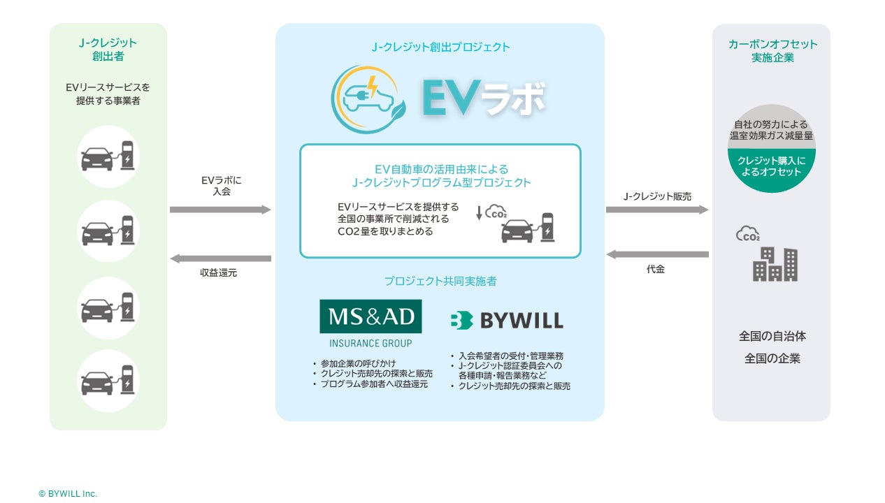 電気自動車導入による脱炭素効果をクレジット化する「EVラボ」、バイウィルと三井住友海上で共同登録が完了