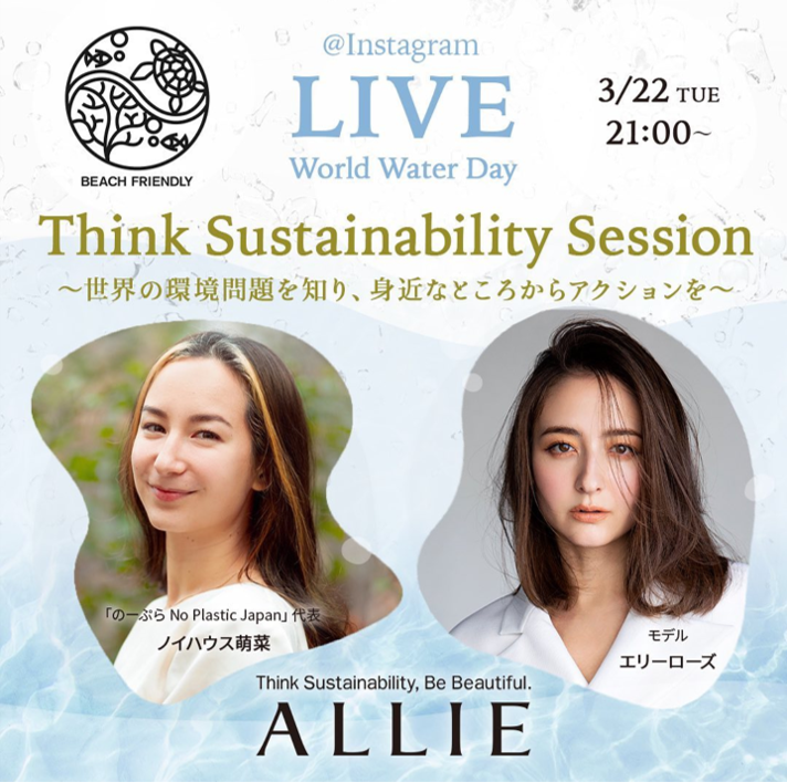 第1弾ではThink Sustainability Actionアンバサダーでプロサーファーの松田詩野さんと、Z世代のSDGsリーダーとしてご活躍されているモデルの長谷川ミラさんをゲストに「ALLIEとともに考えよう、海のためにできること。」をテーマにトークライブを実施しました。