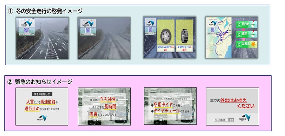 また、大雪が予測されている場合など、お客さまに車での外出を控えていただくようお願いする際は、緊急のお知らせCMによる広報を行います。