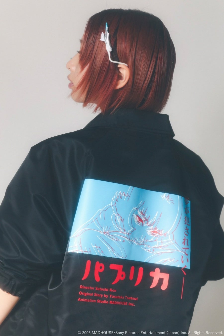 本コラボレーションでは、アニメ映画「パプリカ」を象徴する、主人公パプリカの挑発的な表情が魅力の一コマをプリントしたロングスリーブTシャツやスウェットフーディー、タイトルロゴや印象的なキャッチコピーを落とし込んだコーチジャケットの計3型を展開いたします。