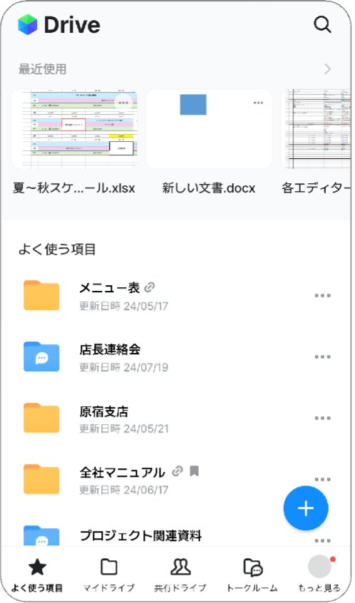 ファイルを保存・閲覧できるDrive機能をモバイル向けに最適化し、もっと仕事がはかどる