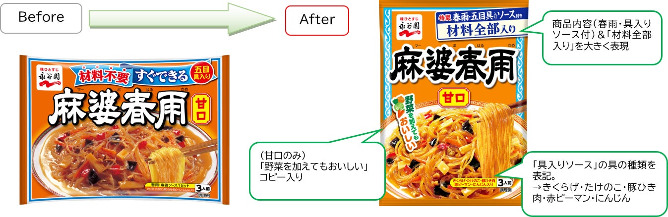 名前は知ってる・・・けど、使ったことはないお客さまのために、商品特長をわかりやすくしました! 永谷園「麻婆春雨」パッケージデザインを一新!