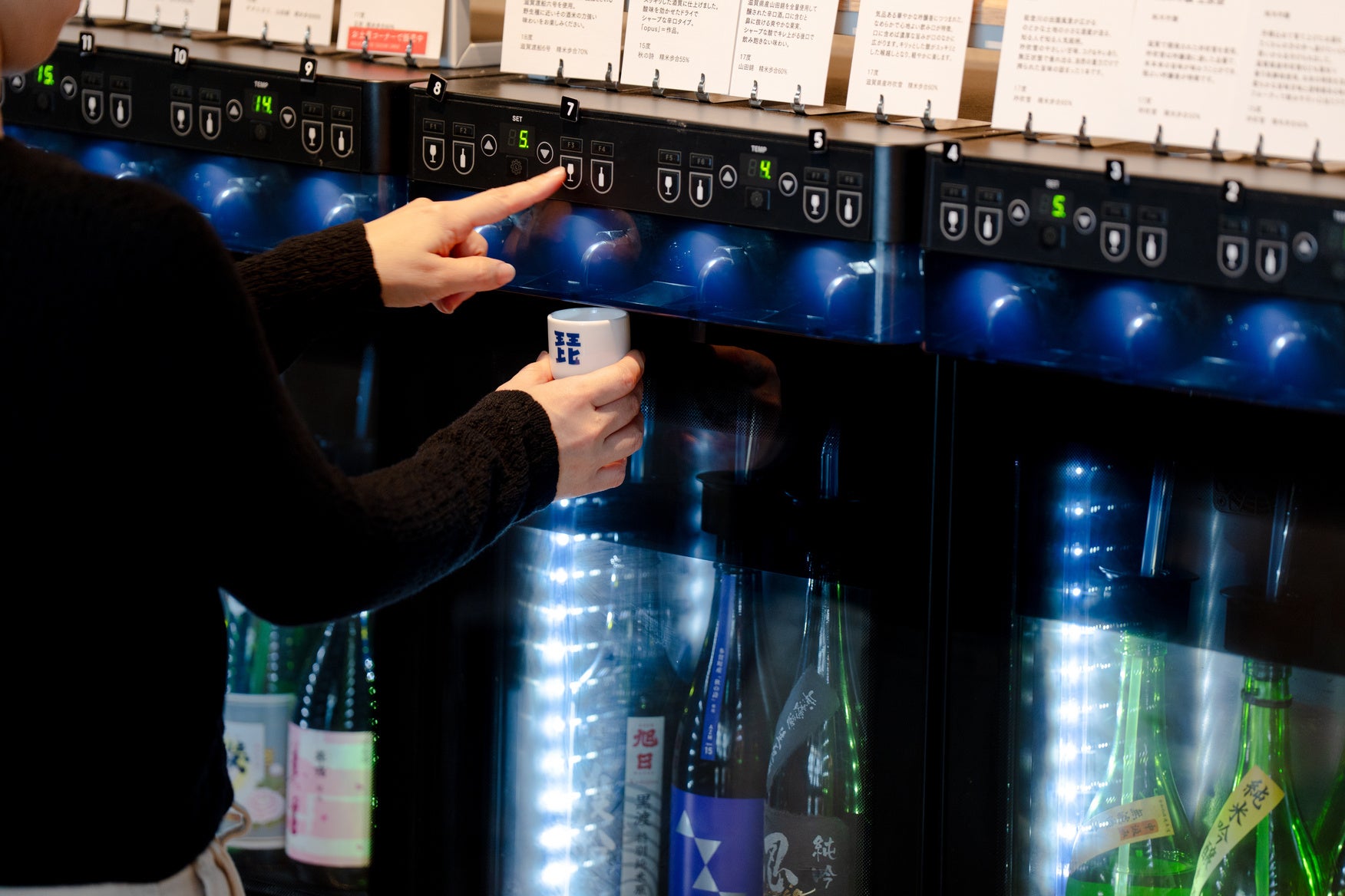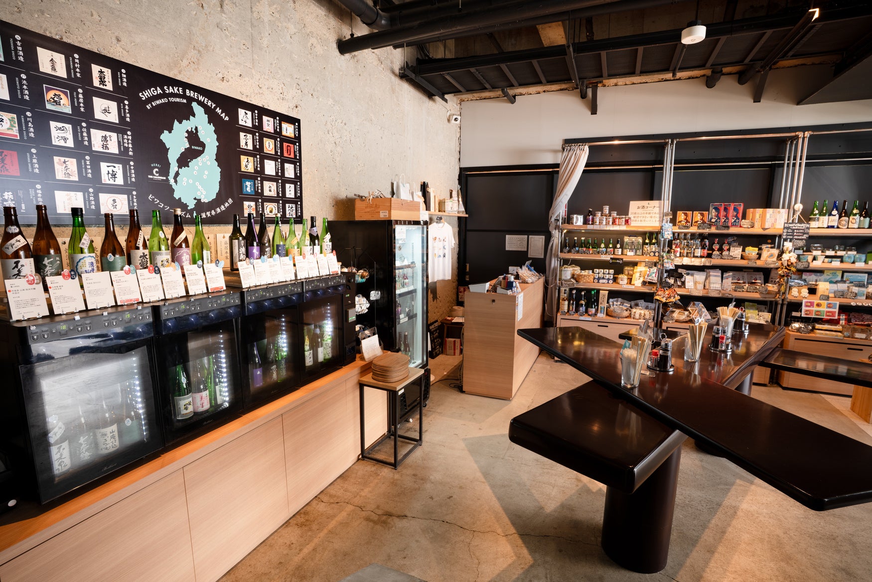 「BIWAKO TOURISM」は、16種以上の地酒を楽しめるコイン式日本酒サーバー、県内各地の名品を揃えたお土産ショップ、荷物預かりサービスを備え、旅人と地元をつなぐ滋賀の新たな交流拠点です。