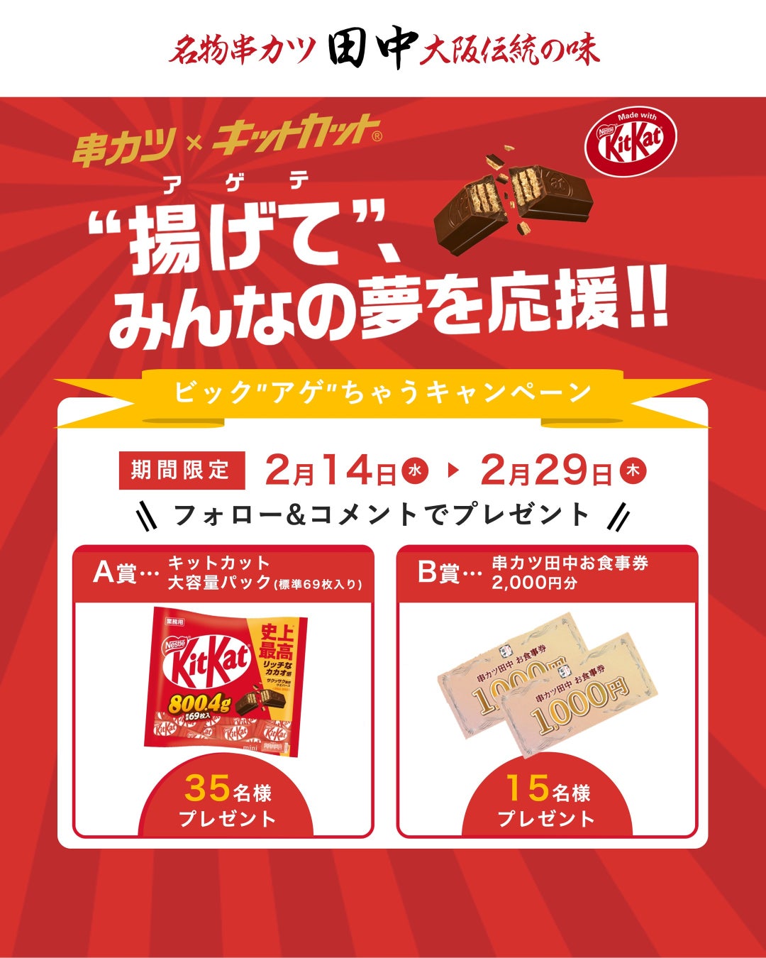 【串カツ×「キットカット」 Xでビック”アゲ”ちゃうキャンペーン】※フォロー&コメント
