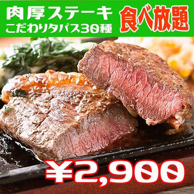 ・肉塊ステーキ食べ放題&タパス30種食べ放題2900円!!