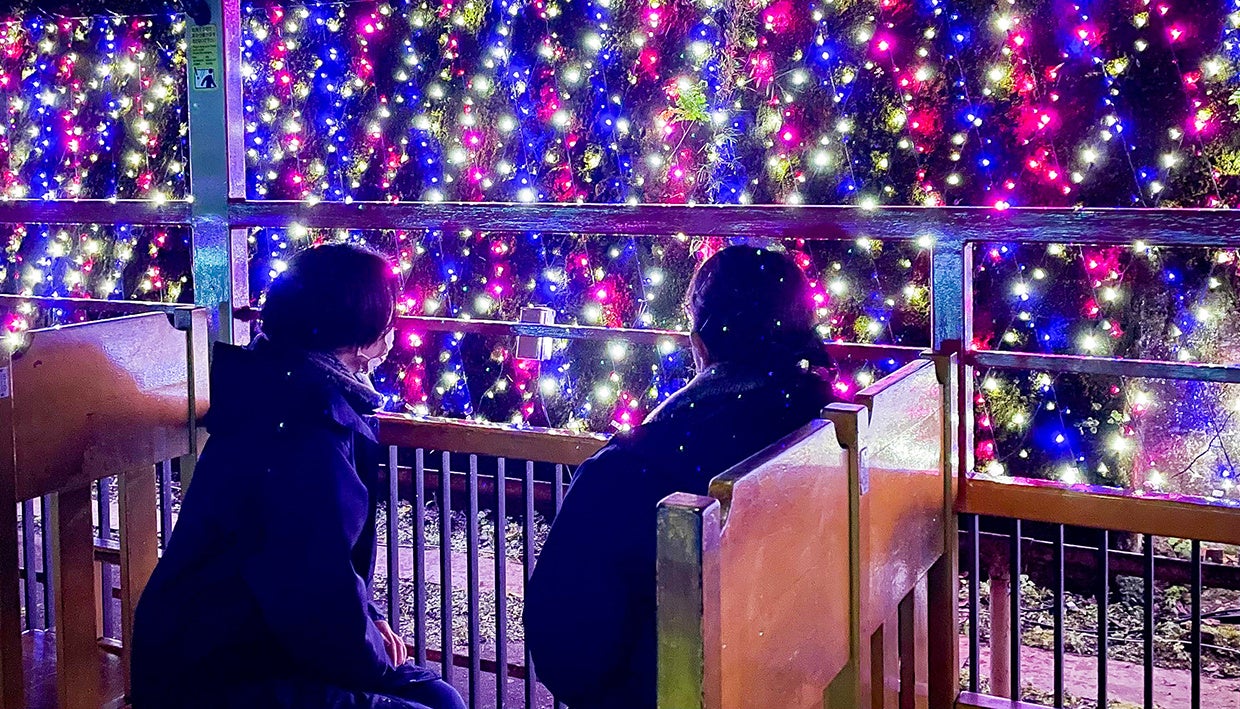 イルミネーションに彩られる、幻想的な冬のトロッコ列車