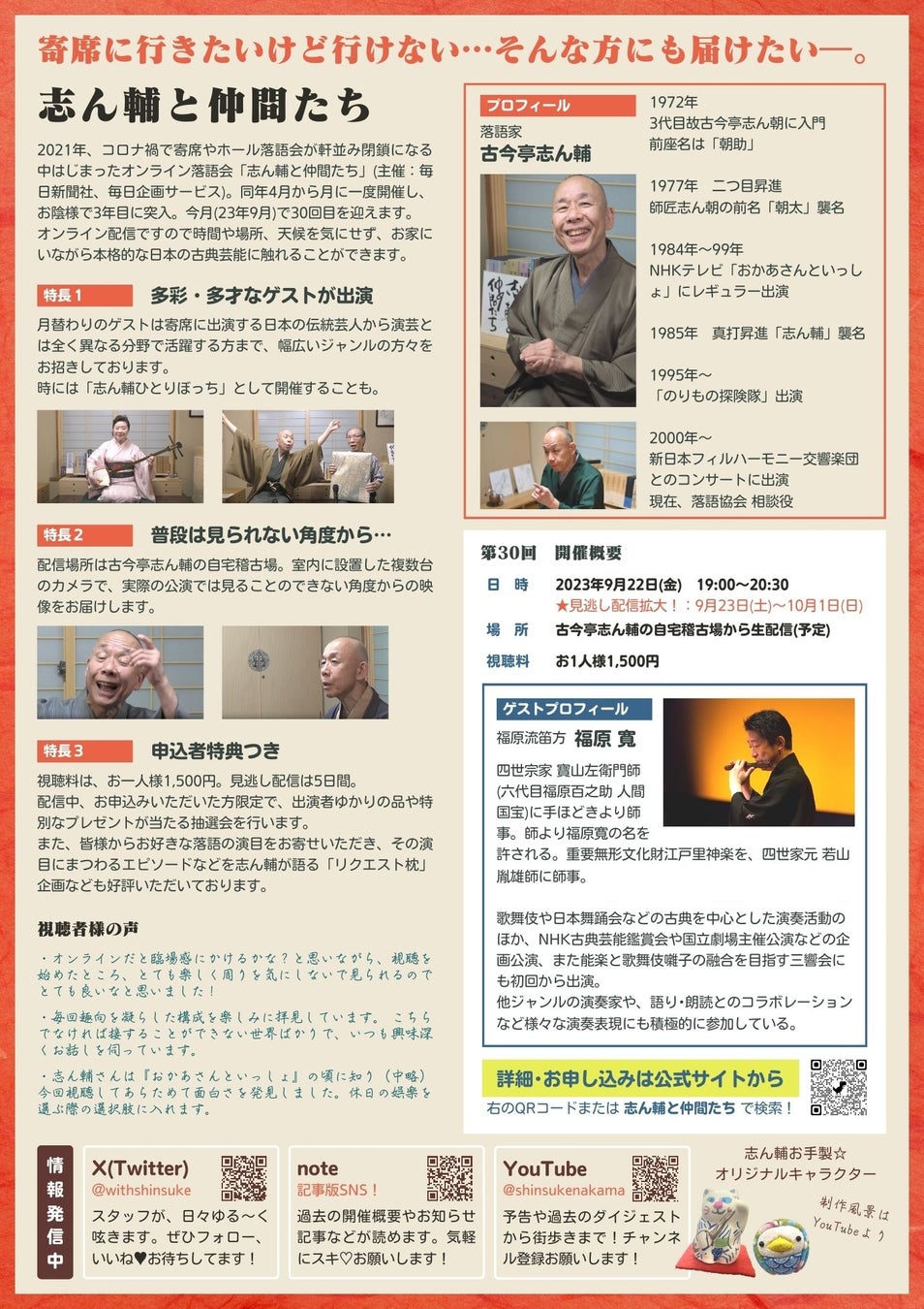 <出演>古今亭志ん輔、福原寛さん(ゲスト・福原流笛方)