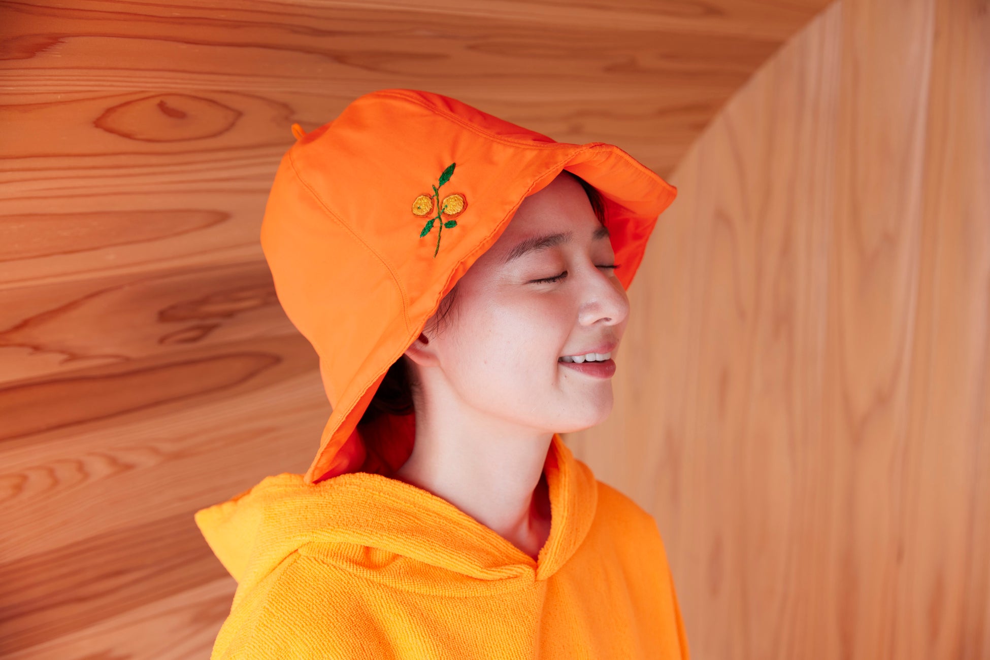 ホテルに隣接するビーチに佇むバレルサウナで、たんかんモチーフのグッツに身を包み、サウナを楽しめます。